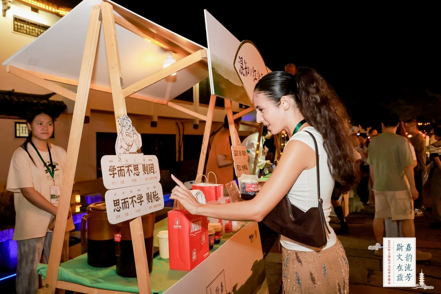 其中,特别设立的“孔子文化巡游挑战”吸引众多外籍友人参与。参与者手持任务卡,完成包括地标打卡、寻友合影、我画你猜论语成语、中文论语名句诵读等趣味任务,在互动游戏中感受孔子文化的魅力。