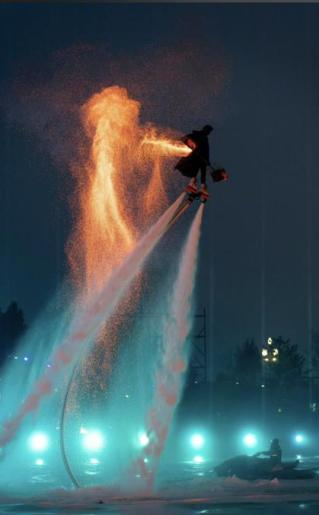 “水上飞人+火壶”表演(资料图) 图片来源:澎湃新闻